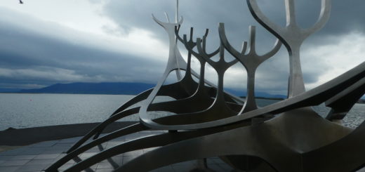 On to Skógafoss waterfall, as featured in the movie ‘Thor: The Dark World’. It’s a beautiful sight, readily accessible from the parking lot, but what truly impresses me is the rainbow that forms around us in the mist at the base. It is as though the young tour group ahead of me is being protected by a shield the have raised up.